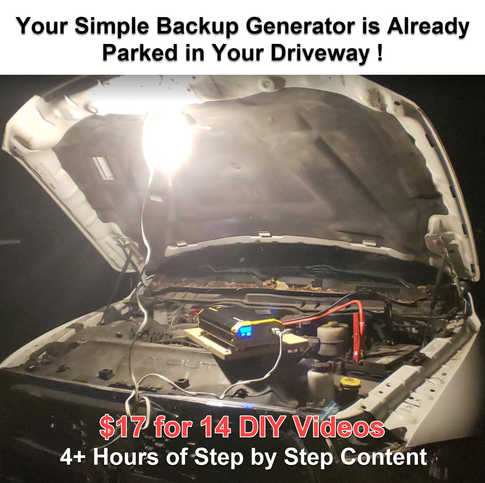 Your Backup Generator is Already Parked in Your Driveway. Power Your House From Your Car, Seriously. Simple, Stuff at Walmart.